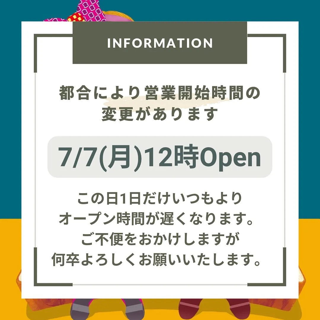 7/7(月)12時Openとなります。 ご不便、ご迷惑をおかけいたしますが よろしくお願いいたします。